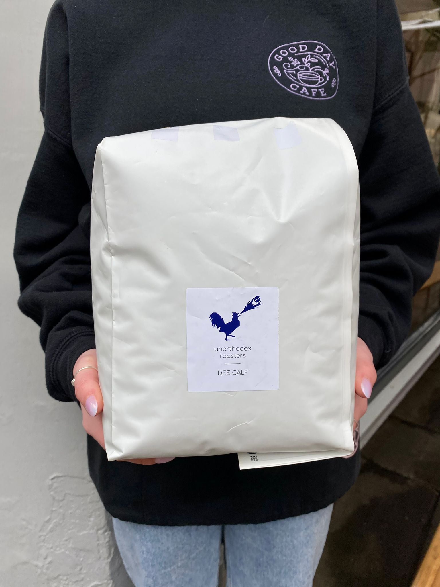 Dream big. Your moment looms. You must avoid the jitters above all else. Dee Calf is at hand. The Swiss Water process ensures this coffee will stand out amongst others.