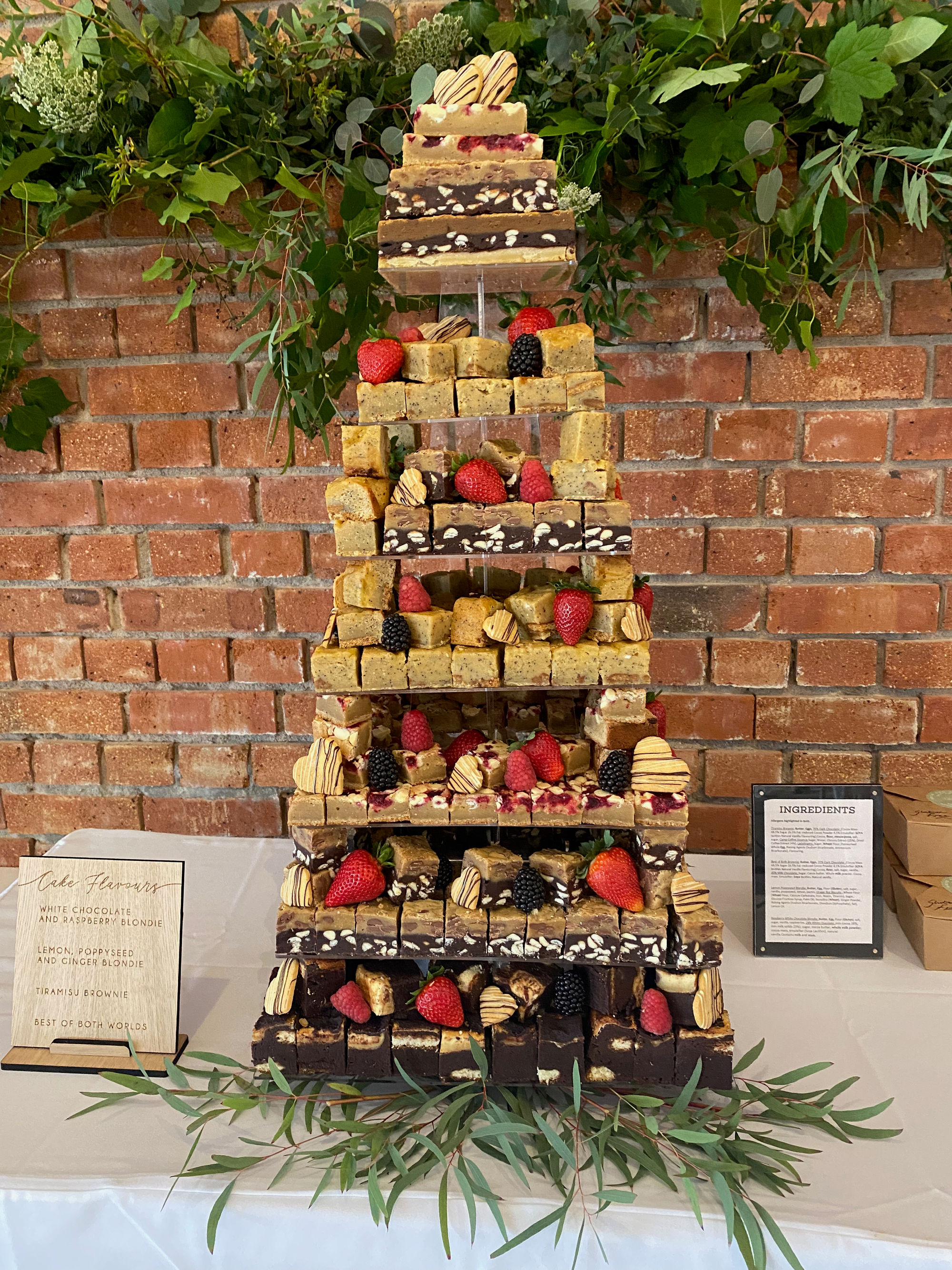 We can provide bulk orders for dessert tables and corporate events with just a few days notice, or our signature Brownie Towers make an amazing alternative to traditional wedding cakes.