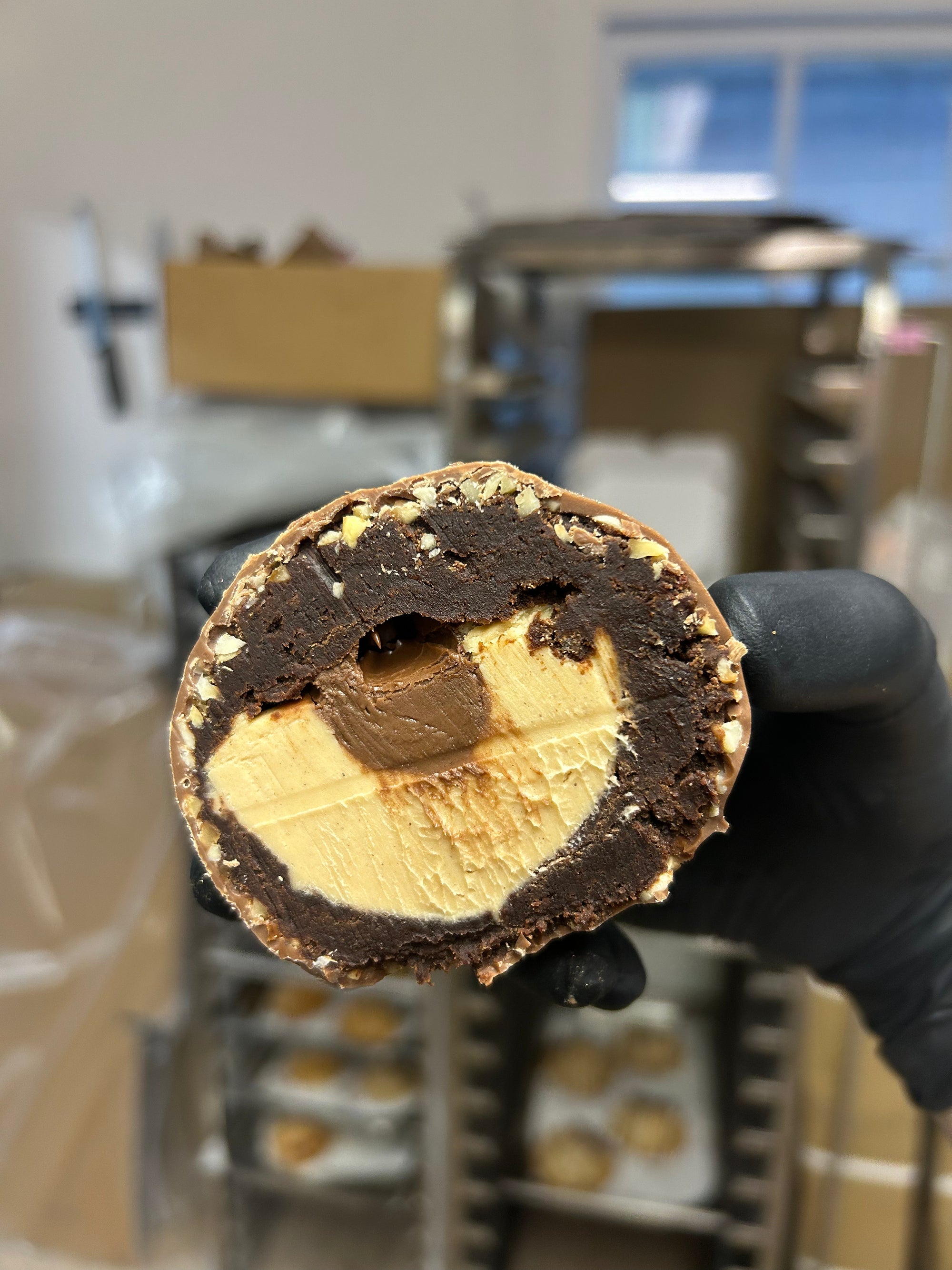 Each Scotchie consists of a chocolate egg or favourite filling, wrapped in brownie, enrobed in solid chocolate and decorated with (you guessed it) more chocolate.