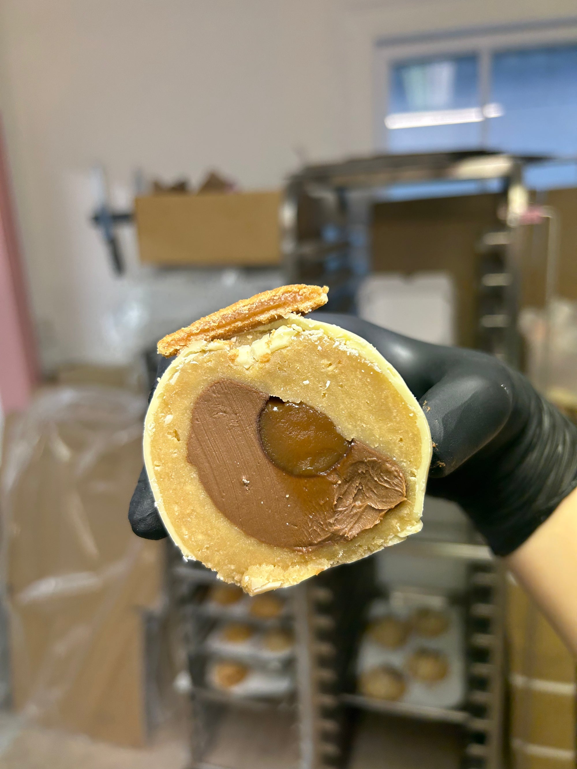 ·      Stroopwafel - Caramel spread with a dulce de leche core wrapped in blondie. Dipped in white chocolate and topped with a mini Stroopwafel.